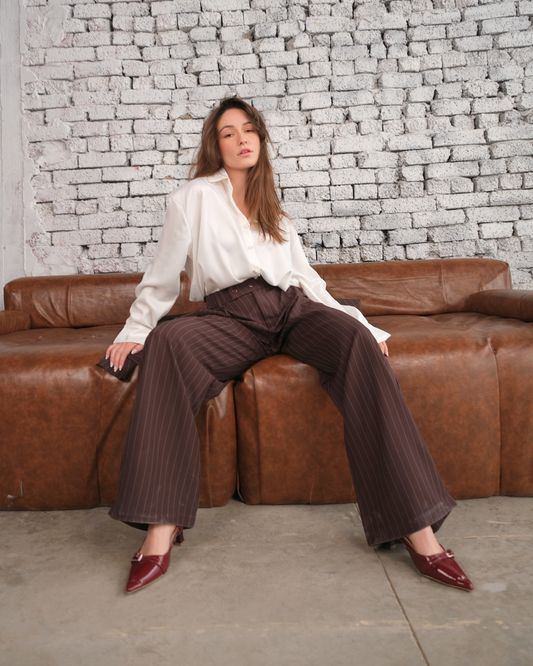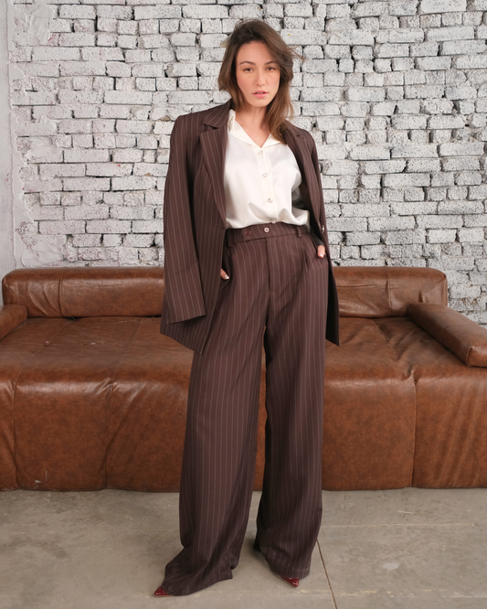 Pinstripe Wide-Leg Pants