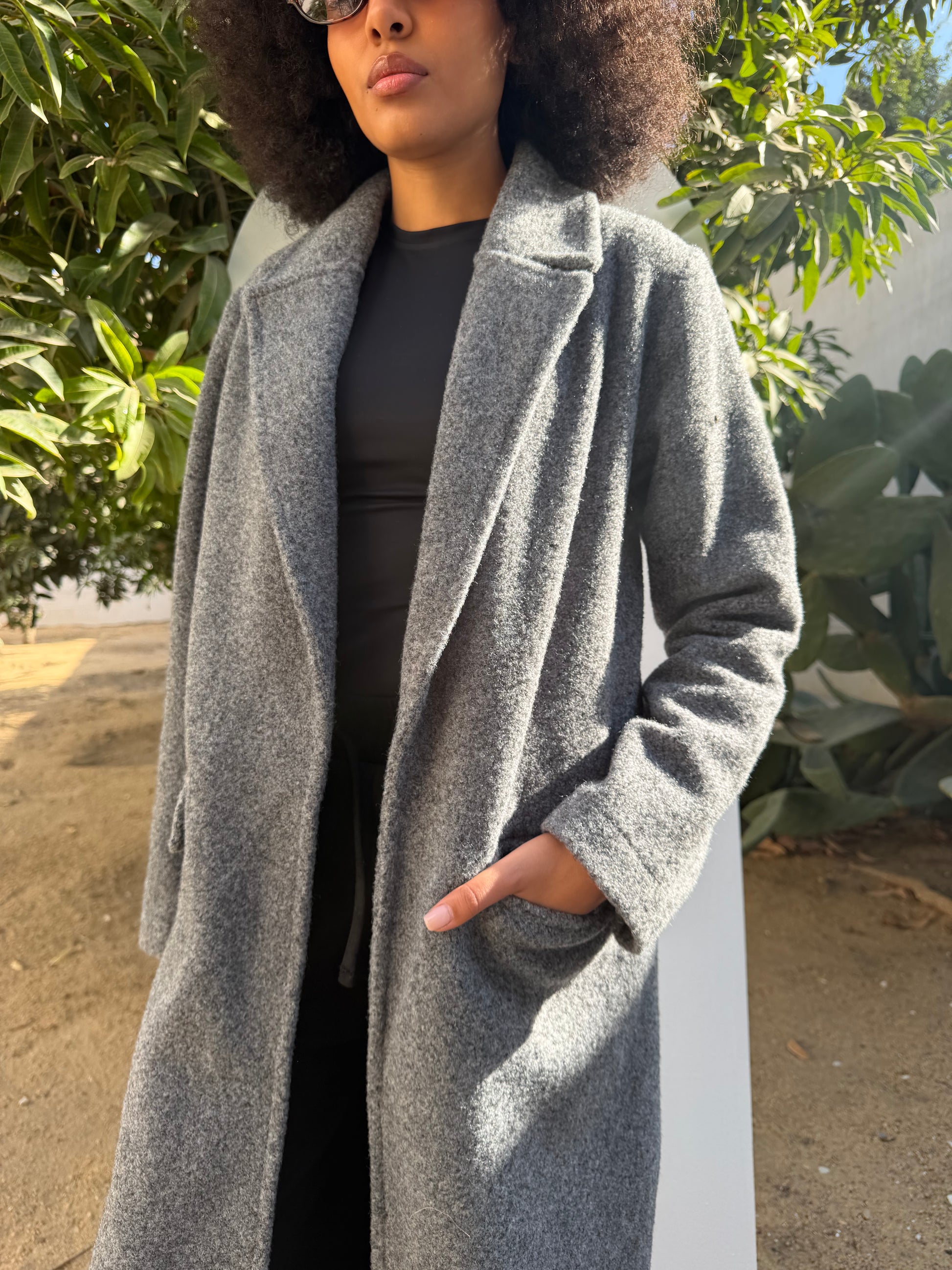 Cut in a flattering longline shape, it’s finished with sharp lapels, functional pockets, and a smooth inner lining for a polished, effortless feel. Perfect for layering over casual or chic looks, making it an essential piece for your cold-season wardrobe.